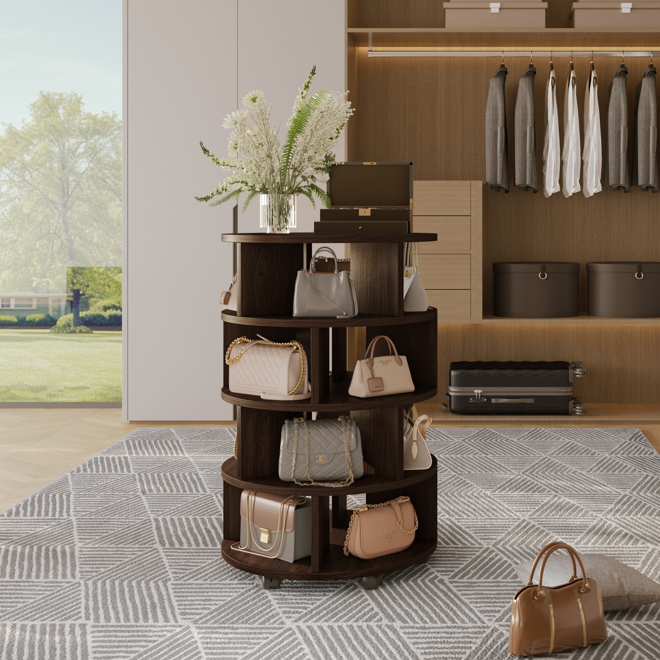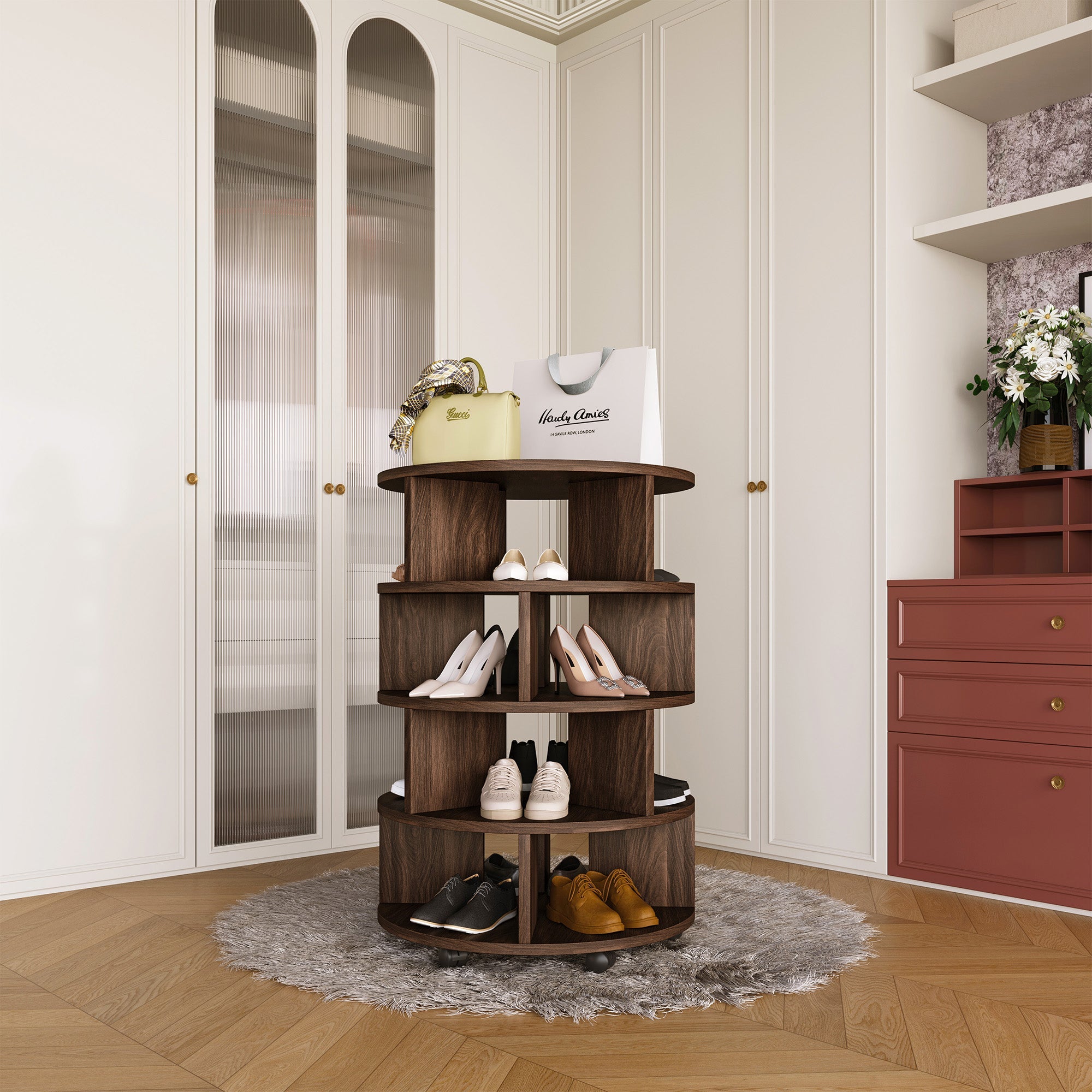 Compact yet spacious! The rotating shoe rack is designed for entryway organization, maximizing vertical space while taking up minimal floor area. Its high-capacity design effortlessly stores multiple pairs of shoes, and the smooth rotation ensures easy access. Built for stability and durability, it keeps your home neat and stylish. Elevate your entryway and step out with ease.
